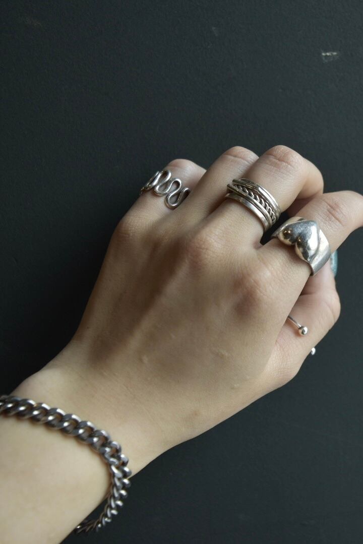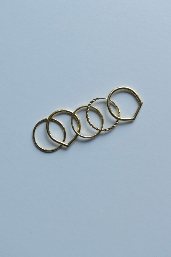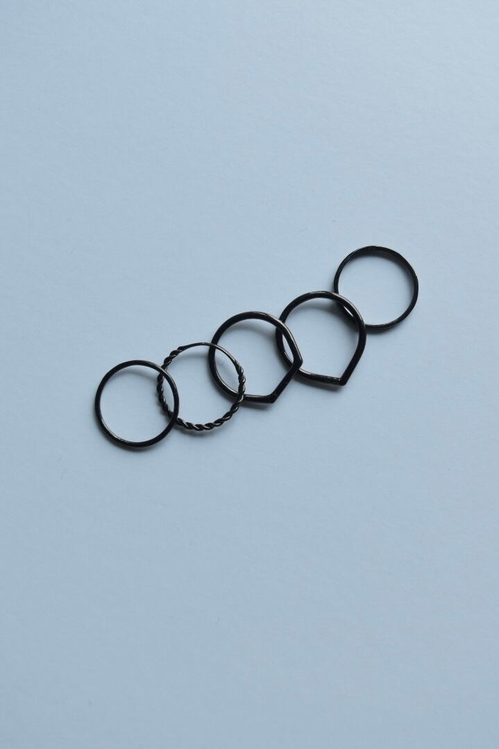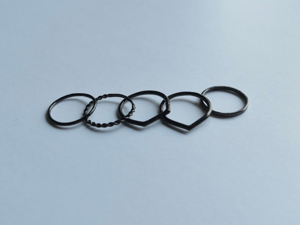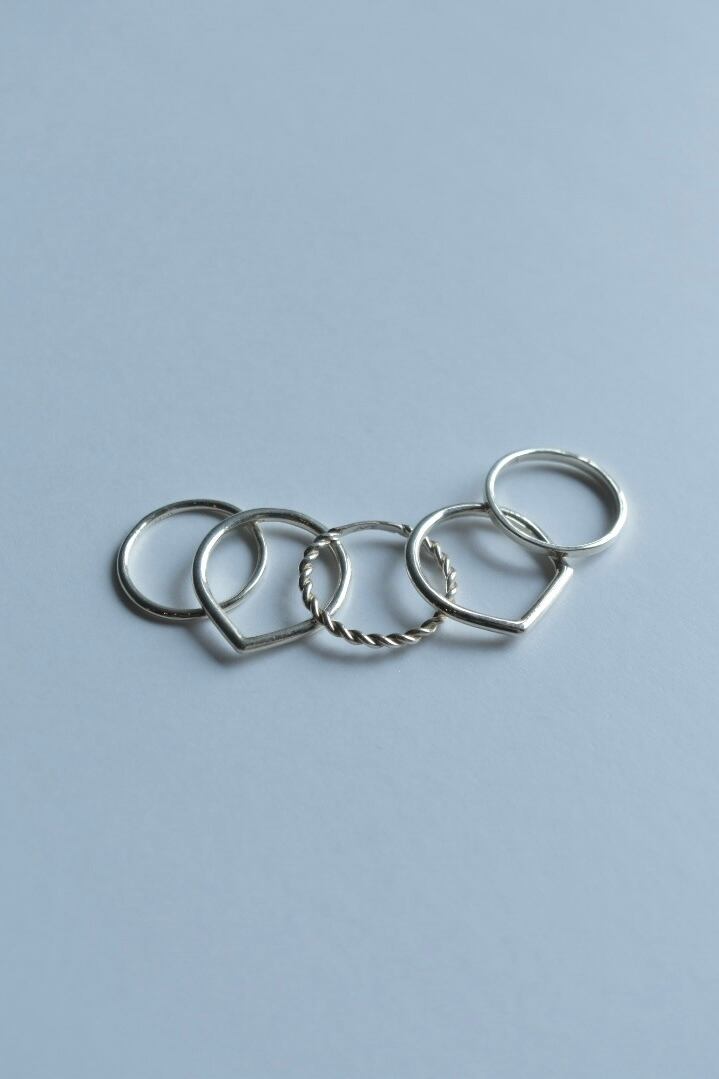 5本ともそれぞれデザインが異なり、重ね着けも1本着けもできます。