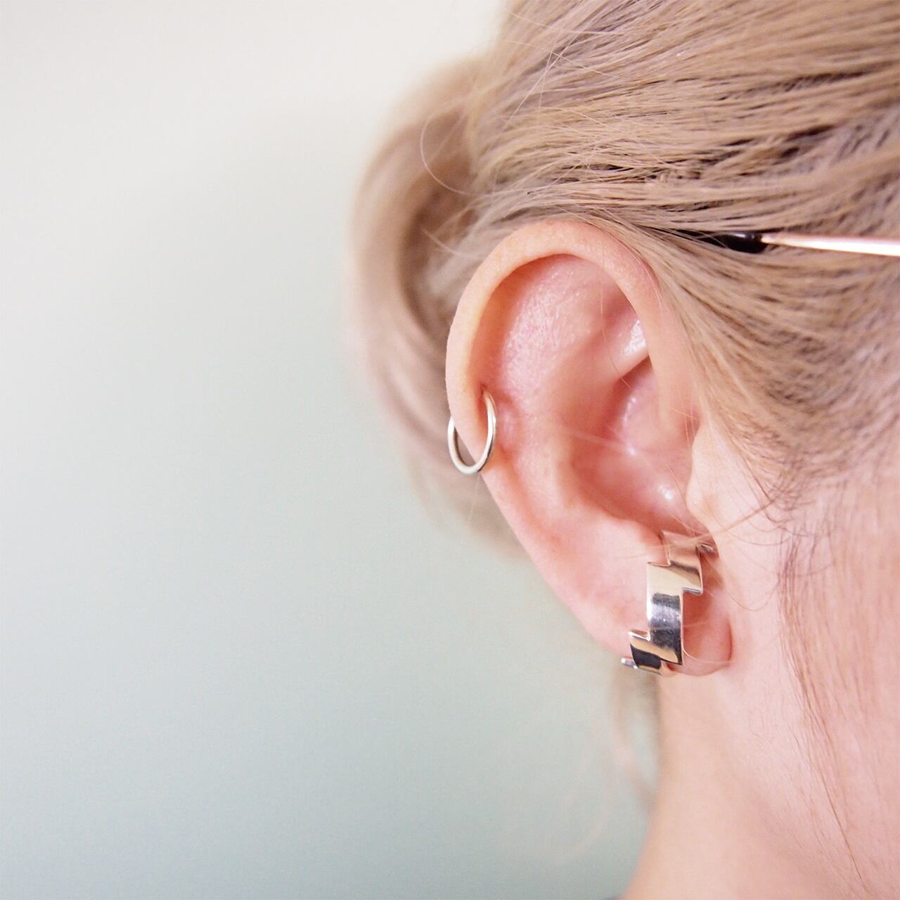ギザギザの形に鏡面仕上げのシルバーがコーディネートの主役になってくれます。
